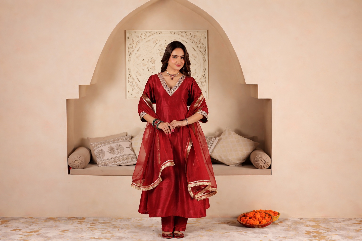 POLKI MAROON A-LINE SUIT SET