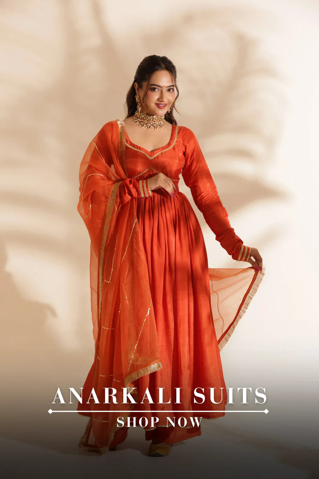 SAFFRON SILK ANARKALI SUIT SET
