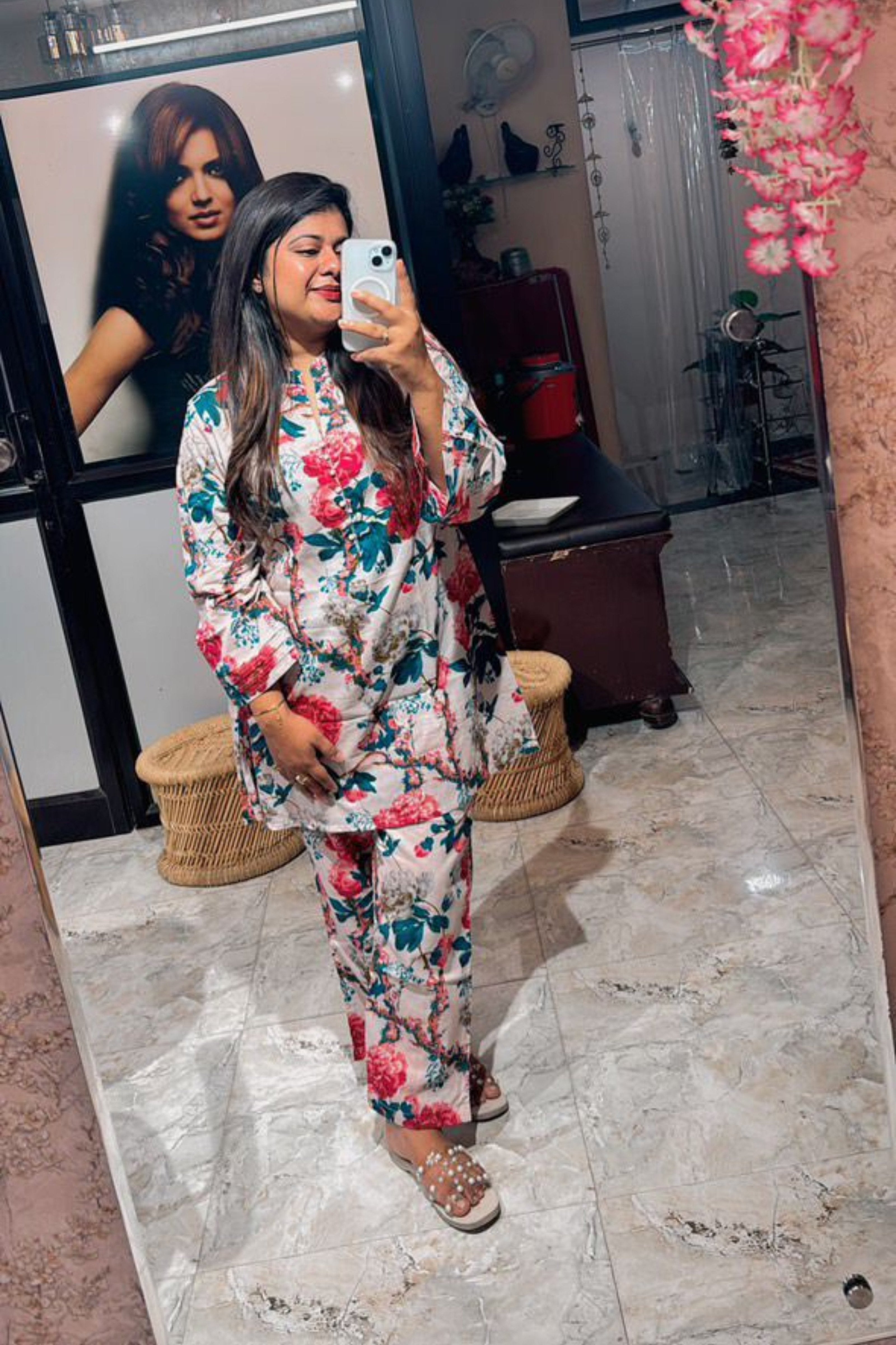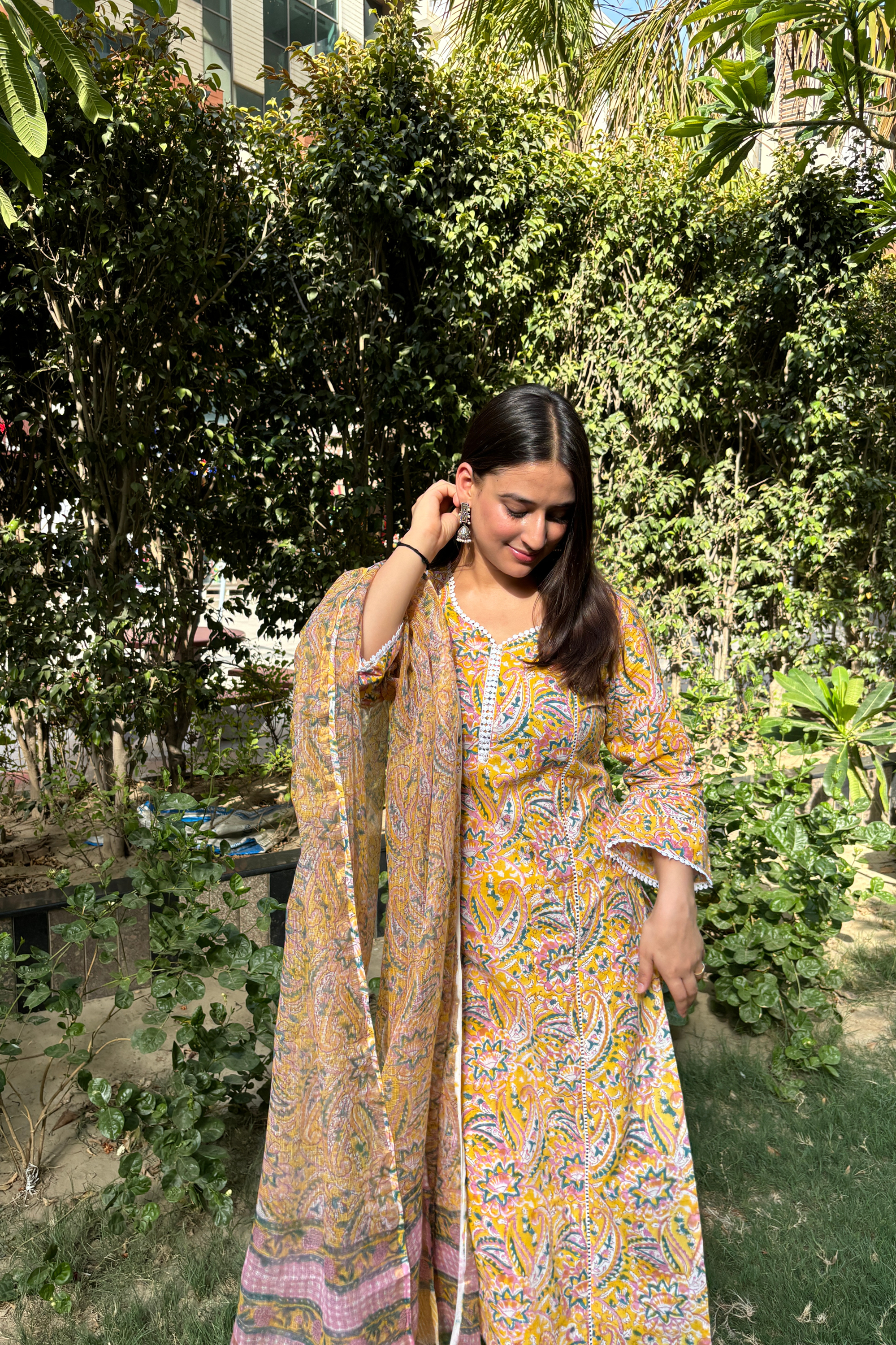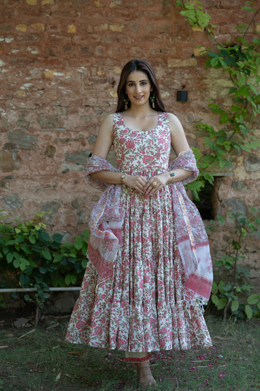 CHERRY BLOSSOM PURE HANDBLOCK COTTON SUIT SET