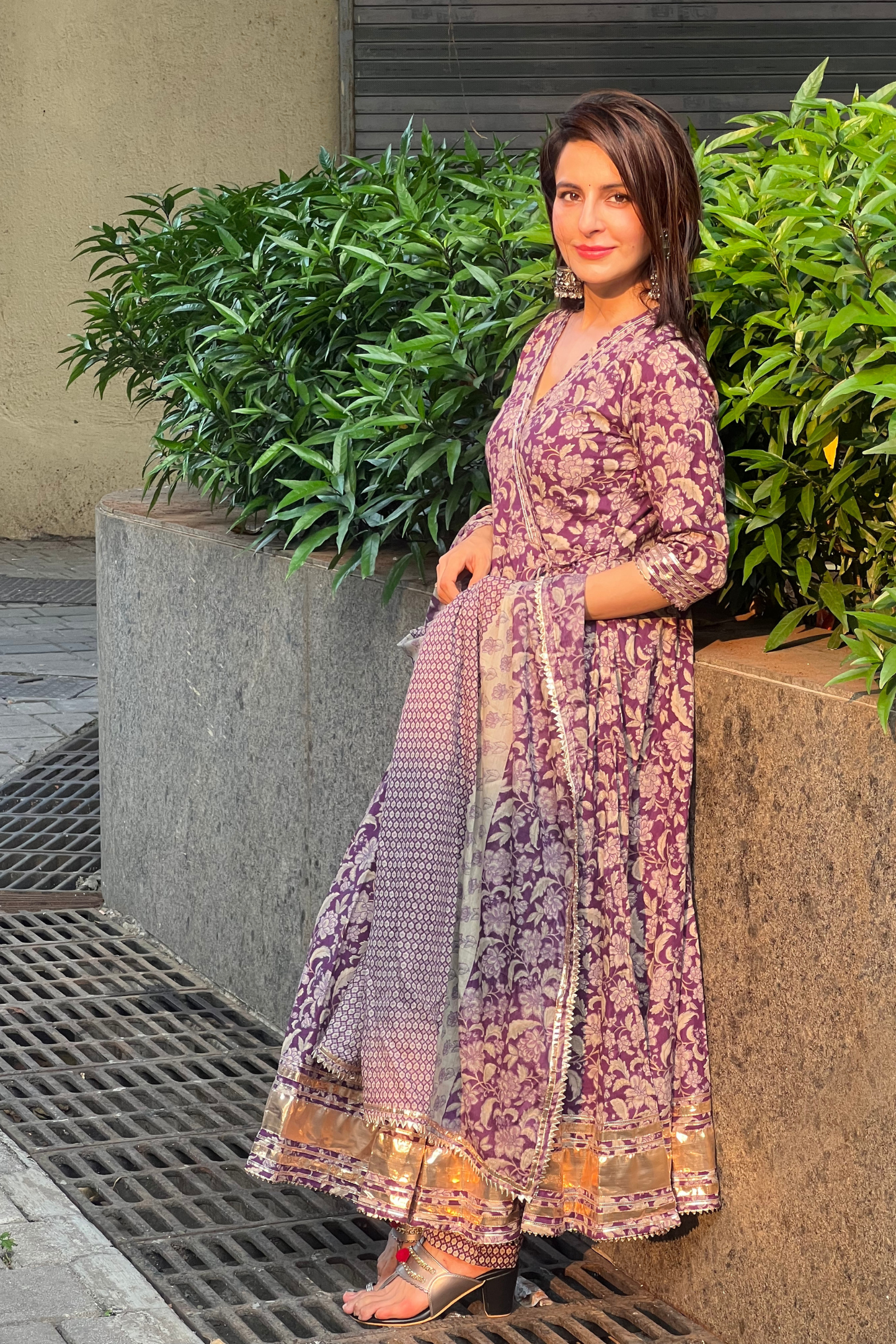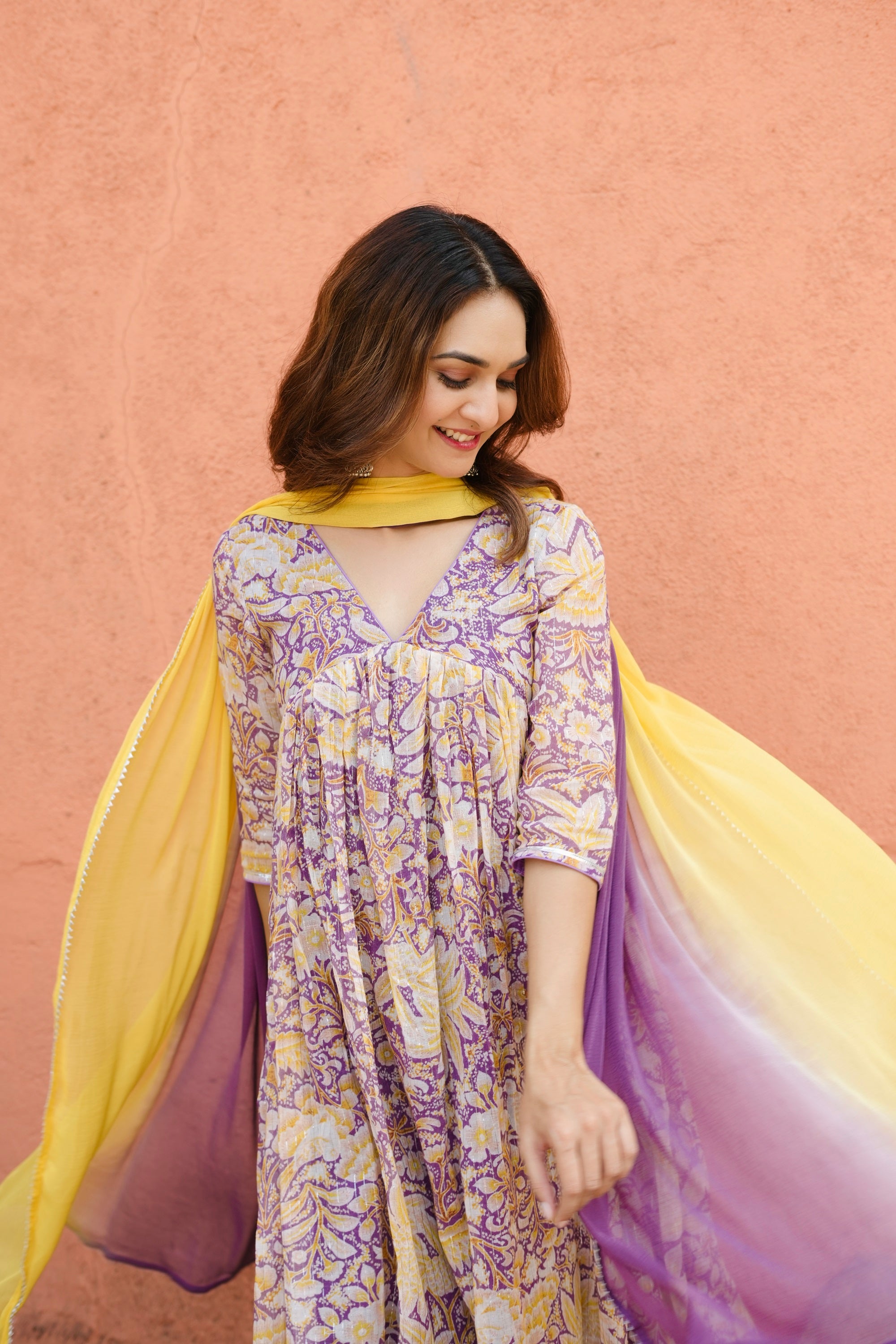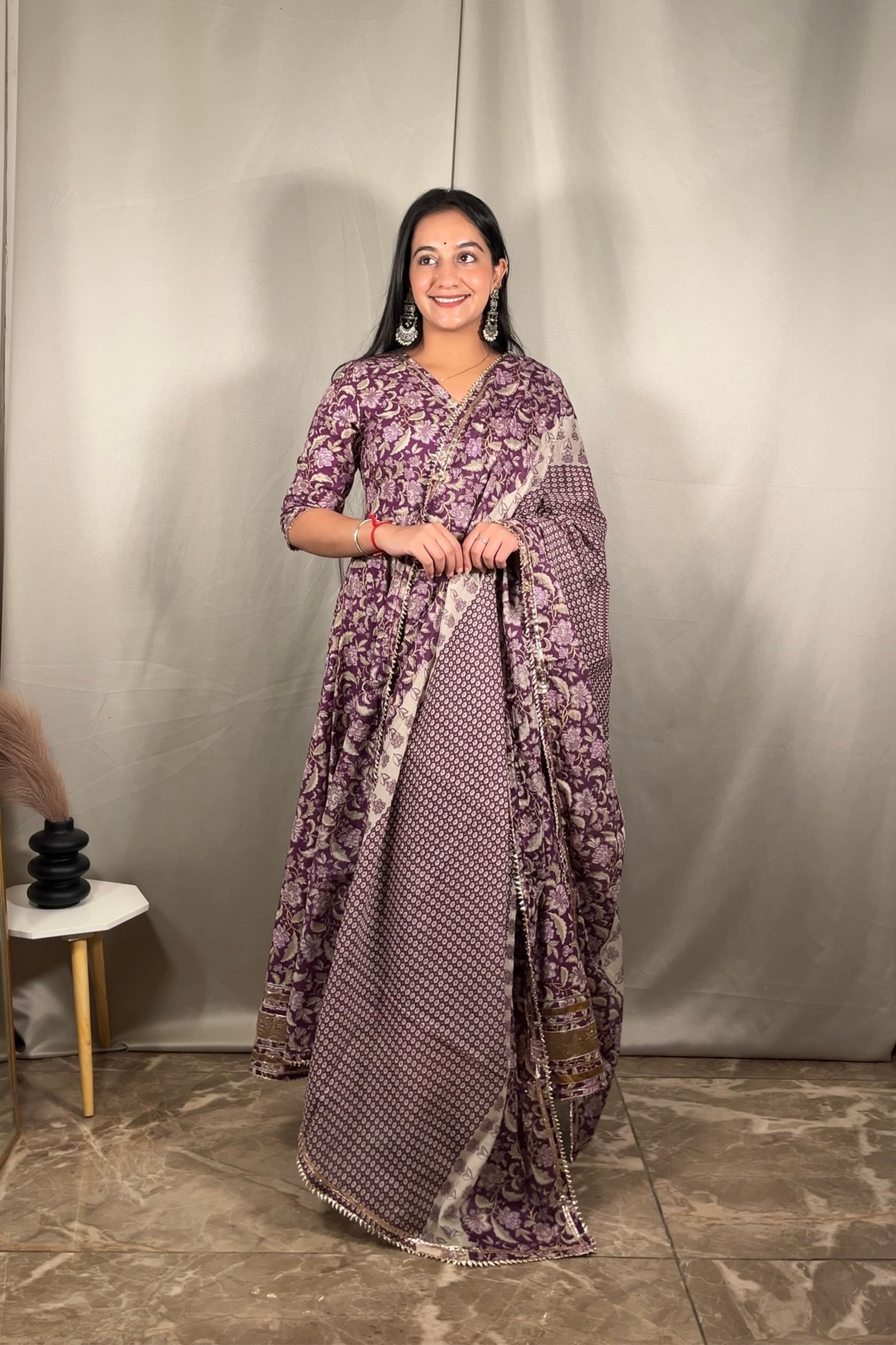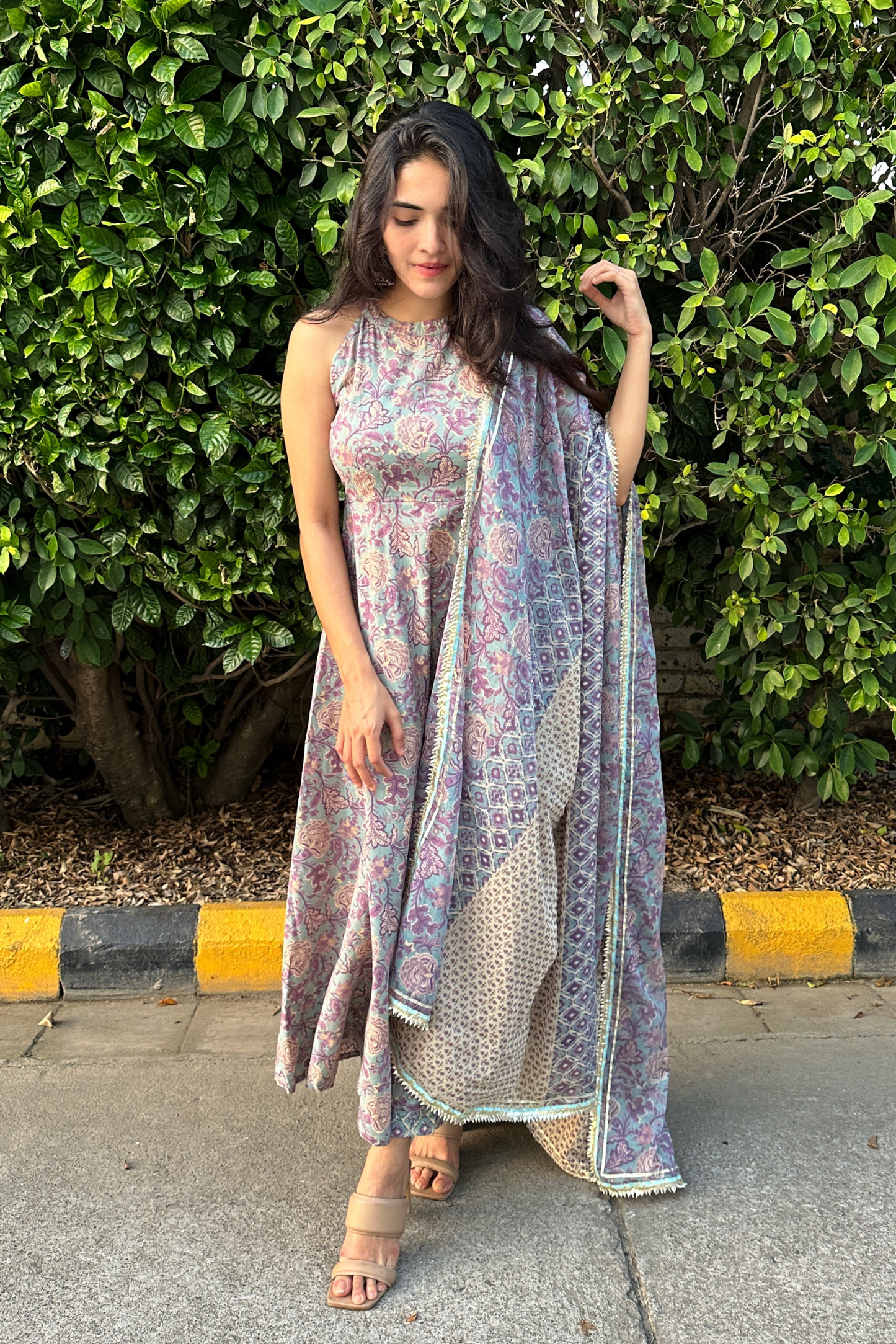 PERIWINKLE FLORAL BLOCKPRINT COTTON SUIT SET