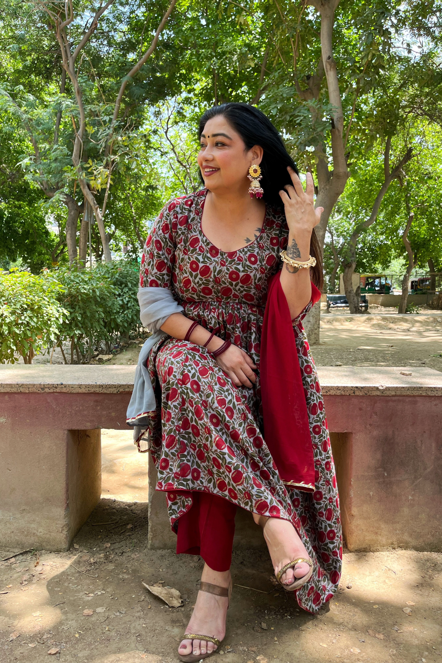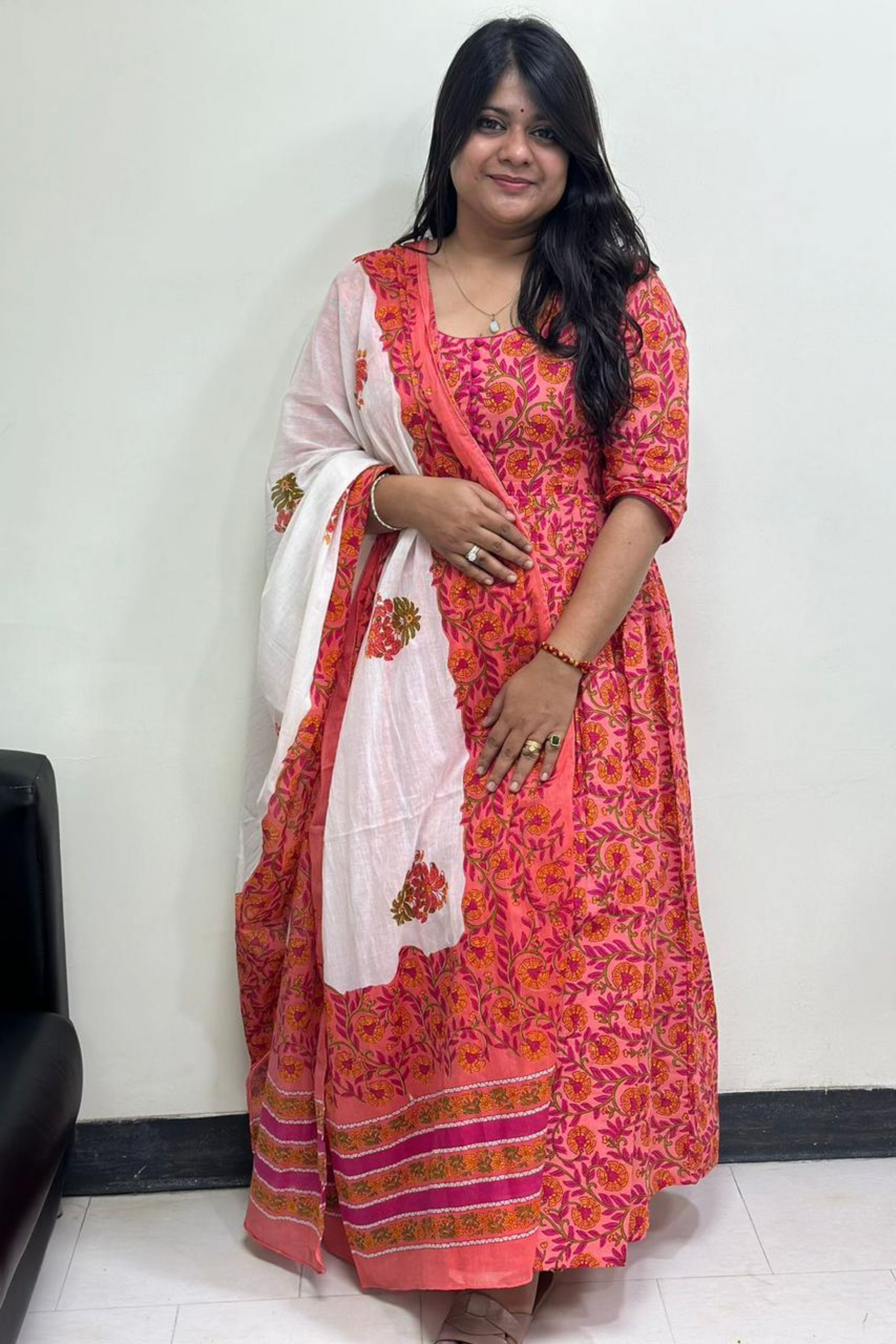 ROYAL BLUSH PURE HANDBLOCK COTTON SUIT SET