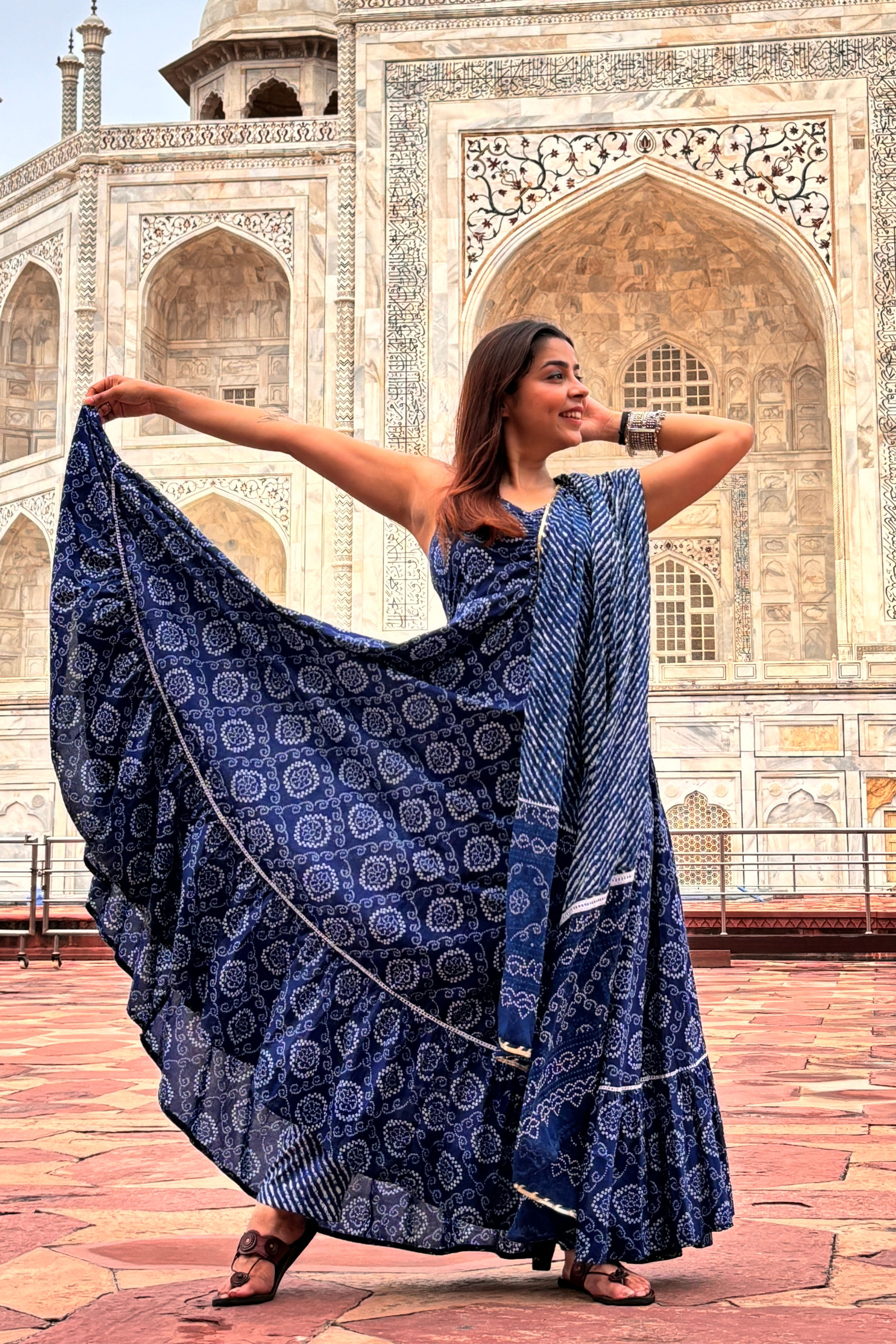 BLUEBERRY BANDHANI COTTON SUIT SET