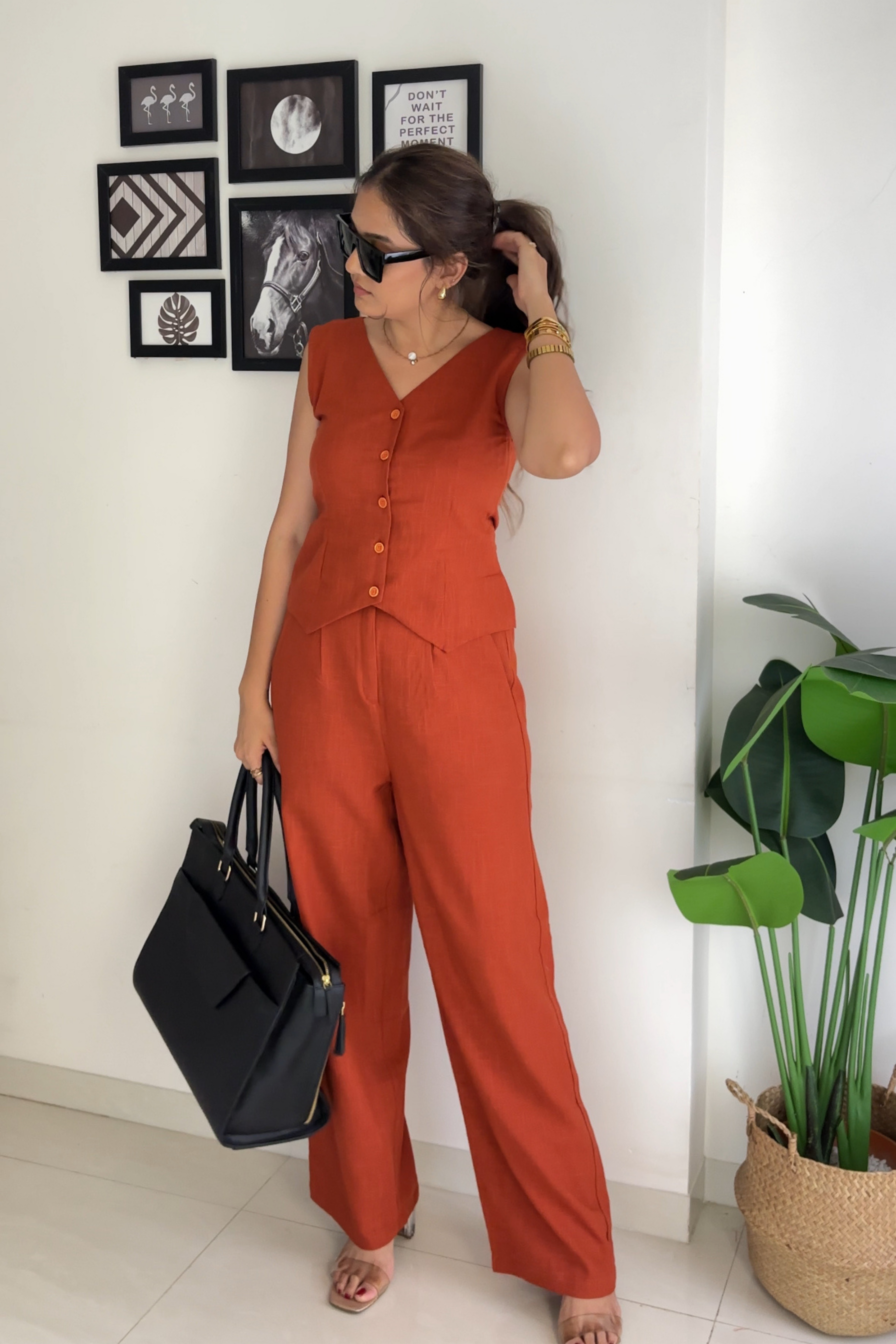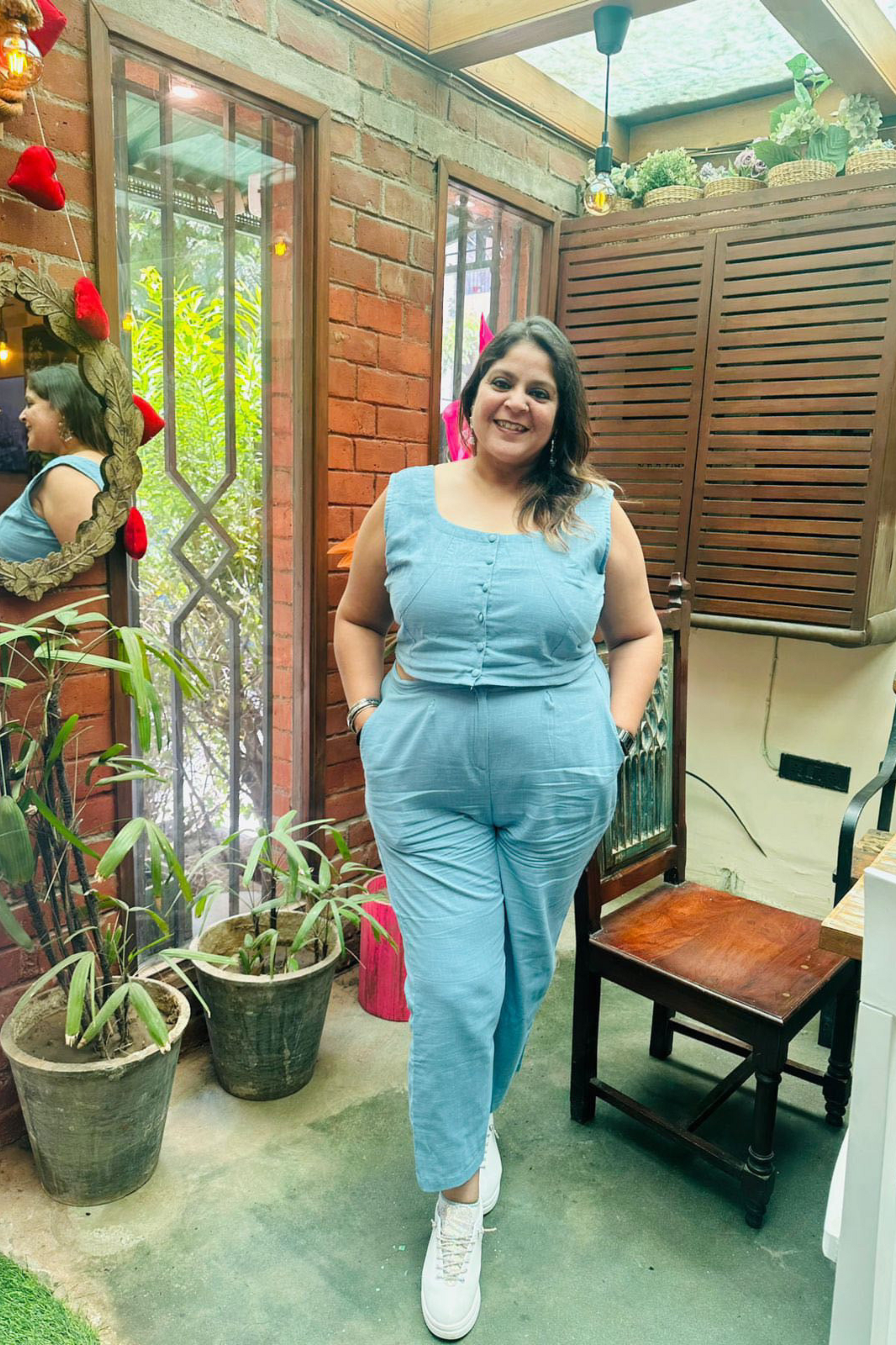 I had ordered two coord sets in size Small, one in walnut brown and one in denim blue. I absolutely loved them! The colors are beautiful, the fit is perfect, and the fabric is so comfortable, just the way I imagined. The overall look is both chic and stylish while still being very comfortable.