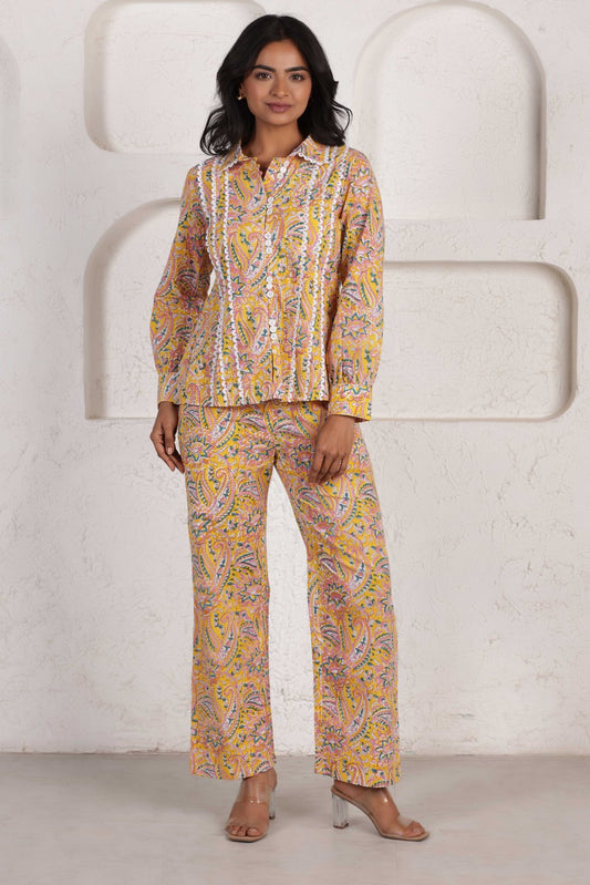 YELLOW MELLOW HANDBLOCK COTTON COORD SET