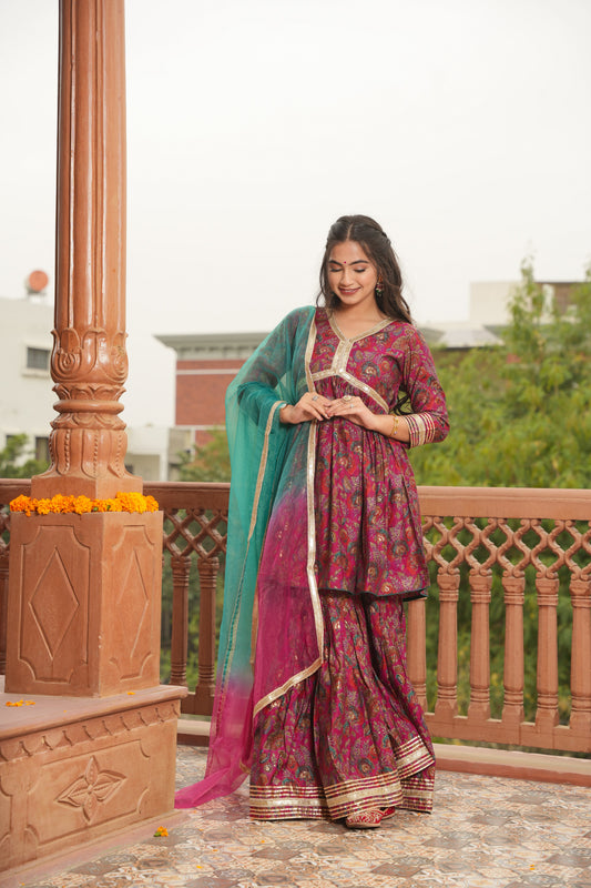 RANGRASIYA HANDBLOCK COTTON SHARARA SET
