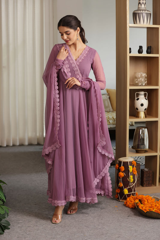63% OFFPURPLE HAZE GEORGETTE SUIT SET