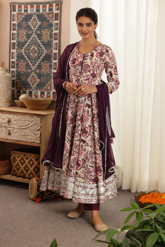 32% OFFLILY ANARKALI COTTON SUIT SET