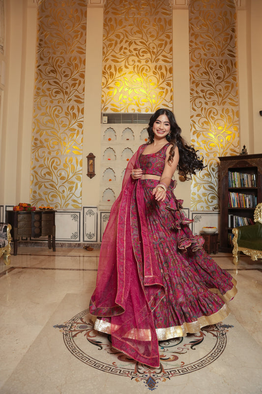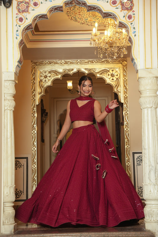 LEELA GEORGETTE KURTI LEHENGA SET